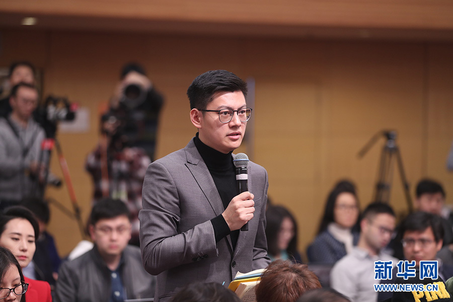3月12日,十三届全国人大一次会议新闻中心在梅地亚中心多功能厅举行记者会,邀请十二届全国人大财经委副主任委员尹中卿、教科文卫委副主任委员吴恒、环资委副主任委员袁驷、内司委委员郑功成,全国人大常委会预算工委副主任刘修文、常委会办公厅秘书局巡视员傅文杰就“人大监督工作”相关问题回答中外记者提问。图为中央电视台记者提问。新华网/中国政府网 王健 摄