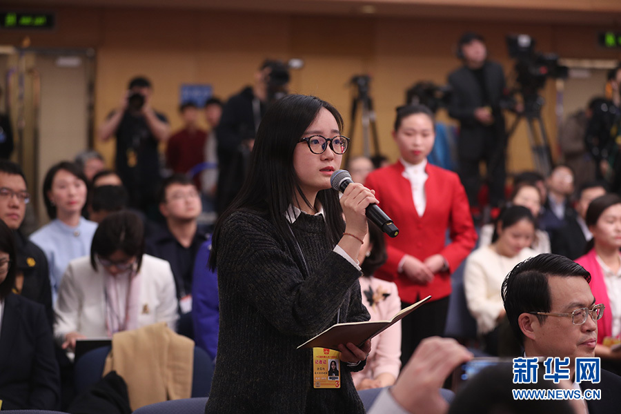 3月12日,十三届全国人大一次会议新闻中心在梅地亚中心多功能厅举行记者会,邀请十二届全国人大财经委副主任委员尹中卿、教科文卫委副主任委员吴恒、环资委副主任委员袁驷、内司委委员郑功成,全国人大常委会预算工委副主任刘修文、常委会办公厅秘书局巡视员傅文杰就“人大监督工作”相关问题回答中外记者提问。图为每日经济新闻记者提问。新华网/中国政府网 王健 摄