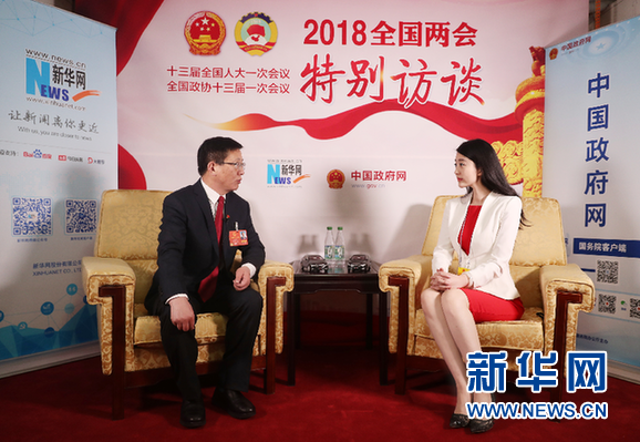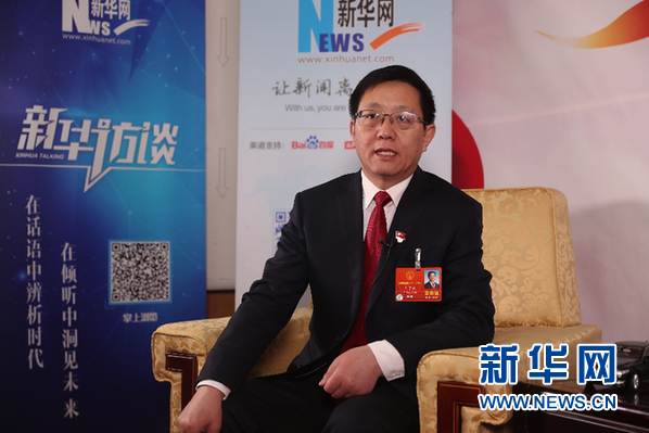 3月5日,全国人大代表、青海省委常委、省政府党组副书记、常务副省长王予波到设在人民大会堂的新华网两会特别访谈演播厅接受专访。新华网 王翰林 摄