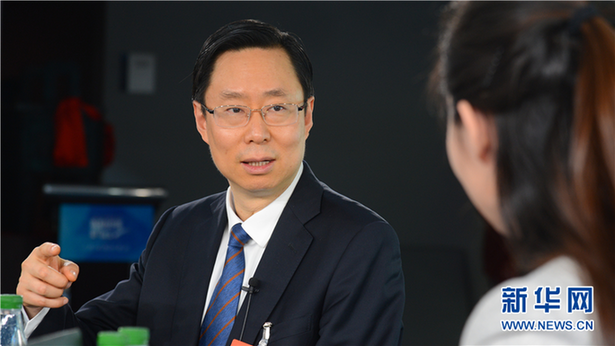 3月14日,全国人大代表、南京市市长蓝绍敏做客新华网2018全国两会特别访谈。新华网 杨濛摄