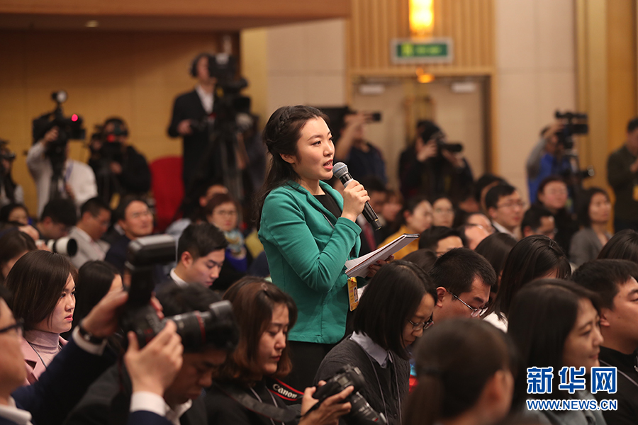 十三届全国人大一次会议新闻中心于3月17日15时在梅地亚中心多功能厅举行记者会,邀请环保部部长李干杰就“打好污染防治攻坚战”相关问题回答中外记者提问。图为新华社记者提问。新华网/中国政府网 曲植 摄