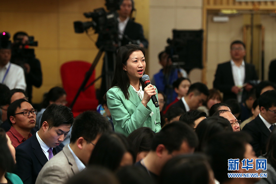 十三届全国人大一次会议新闻中心于3月17日15时在梅地亚中心多功能厅举行记者会,邀请环保部部长李干杰就“打好污染防治攻坚战”相关问题回答中外记者提问。图为江苏广电总台融媒体新闻中心记者提问。新华网/中国政府网 曲植 摄