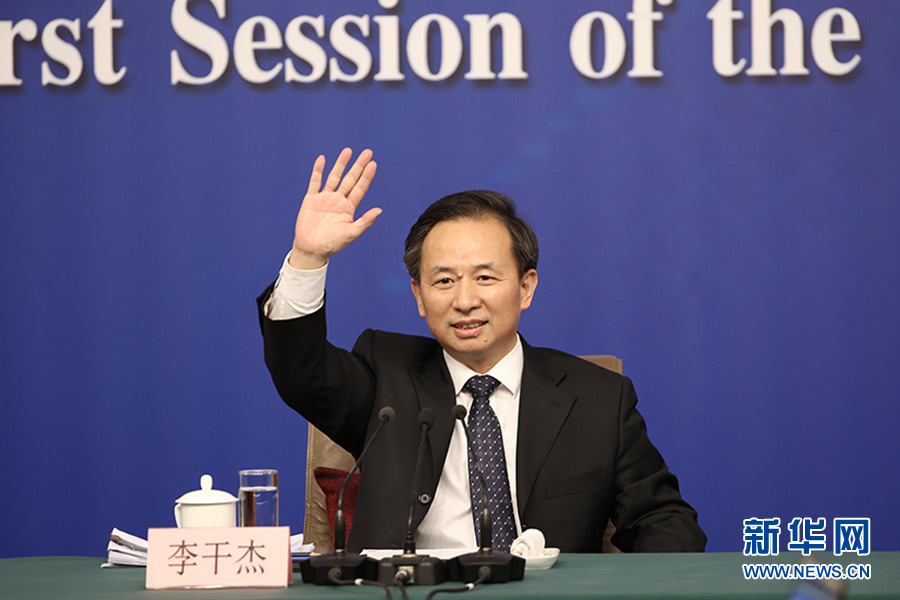 十三届全国人大一次会议新闻中心3月17日(星期六)15时在梅地亚中心多功能厅举行记者会,邀请环保部部长李干杰就“打好污染防治攻坚战”相关问题回答中外记者提问。图为环保部部长李干杰。新华网/中国政府网 陈杰 摄
