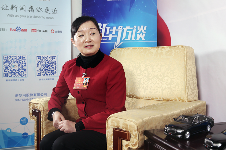 全国人大代表刘光萍到新华网人民大会堂两会特别访谈间接受专访。新华网 郝广鹏 摄