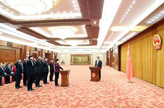 全国人大常委会举行宪法宣誓仪式 栗战书主持并监誓