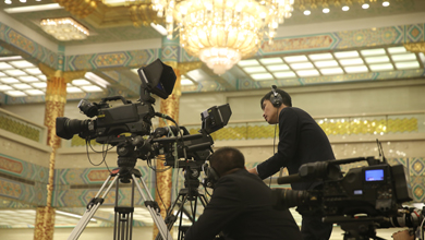 记者在采访拍摄