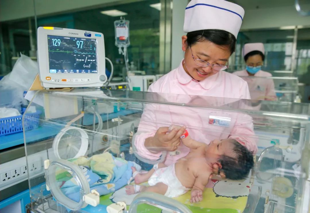 2018-05-12,江苏泰州。5月12日,在泰州市人民医院南院新生儿重症监护室,护士正在为新生儿护理。当日是国际护士节,各地的“白衣天使”们依然忙碌在各自的医护岗位上,为患者提供服务。作者:汤德宏