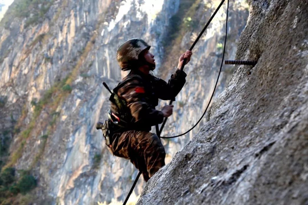 2018-12-22,四川西昌。一名武警特战队员正在进行野外攀岩。作者:好摄之徒