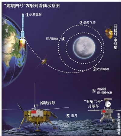 嫦娥四号去年12月8日搭乘火箭发射,12月12日进入环月轨道,12月30日进入月球背面着陆准备轨道。12月12日后,嫦娥四号进行了2次环月轨道修正,与“鹊桥号”中继星进行了4次中继链路测试,开展激光测距、三维成像等导航敏感器在轨测试。