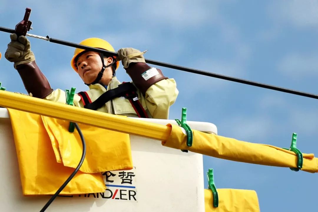 2018-09-06,山东济南。一名电力员工专注进行线路带电作业。作者:CBT