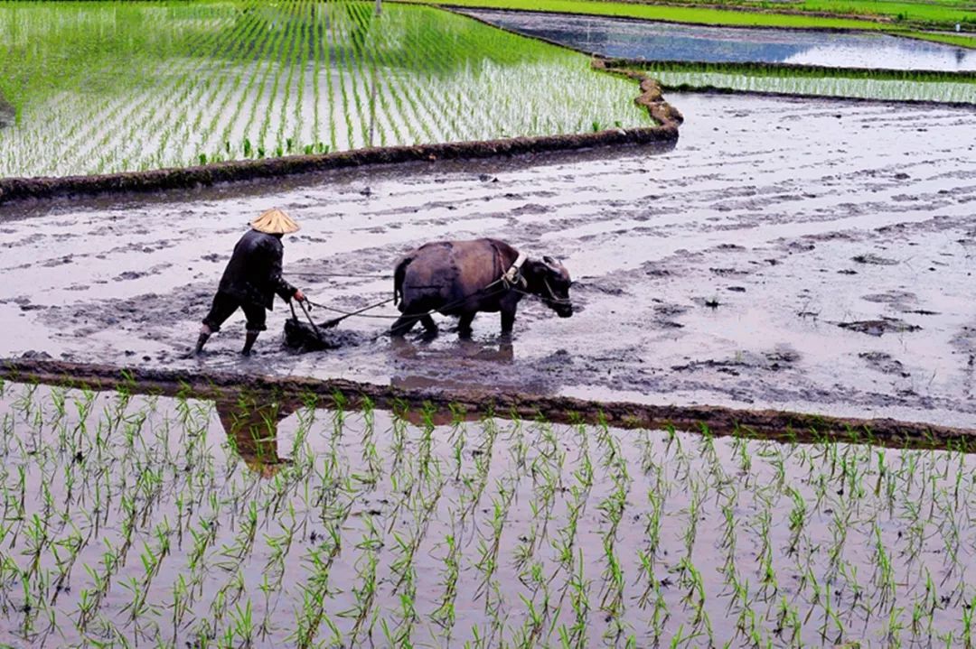 2018-05-18,福建永泰。永泰县盘谷乡新丰村的村民在耕田。作者:何启钧