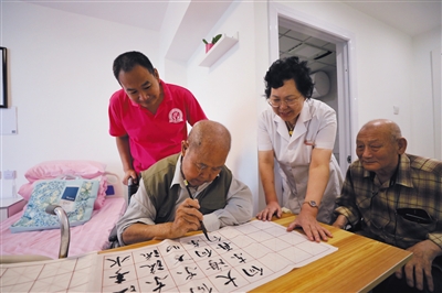去年9月12日,安贞街道安华怡园养老照料中心开门迎客,入住老人在房间里练习书法。资料图片/记者 王飞 摄