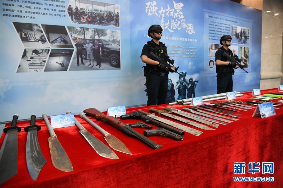 广东警方查扣的涉黑涉恶团伙的涉案物品(2018年7月5日摄)。新华社记者邓华摄