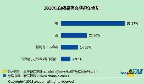 调研数据显示,参与调查的白领中有55.17%表示能拿到年终奖,比例较2017年的66.1%下降明显。没有年终奖的白领,这个“寒冬”,会更加冷。