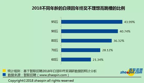 “因年终奖不理想而跳槽”这一趋势在年轻人中更普遍。而年长一些的白领通常薪酬比较高也有一定的财富积累,没有把年终奖看的太重。