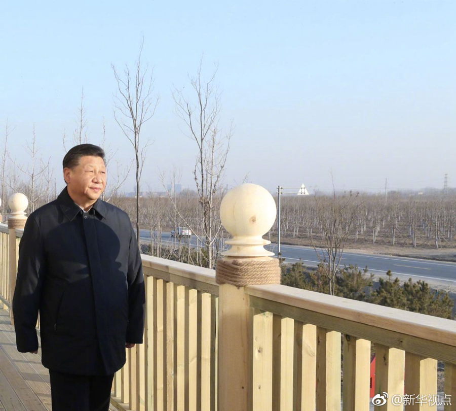 雄安新区坚持生态优先、绿色发展,率先启动生态基础设施建设和环境整治,目前已完成11万亩“千年秀林”建设。16日下午,习近平总书记来到“千年秀林”大清河片林一区造林区域,乘车穿行林区察看林木长势,登上秀林驿站二层平台远眺林区全貌,同当地护林员代表亲切交流。他说,蓝天、碧水、绿树,蓝绿交织,将来生活的最高标准就是生态好。雄安新区过去有一定的基础,现在搞“千年秀林”,将来这里一定是最宜居的地方。绿水青山就是金山银山,雄安新区就要靠这样的生态环境来体现价值、增加吸引力。(记者张晓松、谢环驰、鞠鹏)