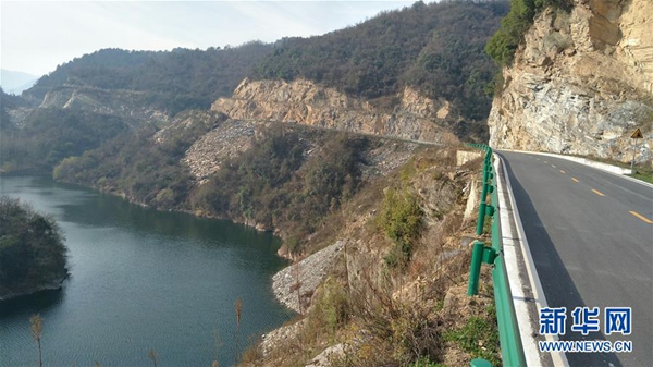 湖北十堰市境内的丹江口水库环库路已安装好防护栏(2018年12月18日摄)。新华社发(熊伟 摄)