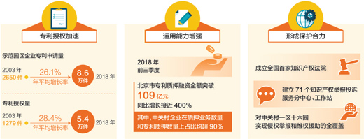 在创新能力不断攀升的同时,示范园区的知识产权保护能力也在不断加强:这里成立了全国首家知识产权法院,建立了71个知识产权举报投诉服务分中心、工作站,对中关村一区十六园实现了侵权举报和维权援助的全覆盖,行政执法与司法保护有效衔接,形成了知识产权保护的合力。
