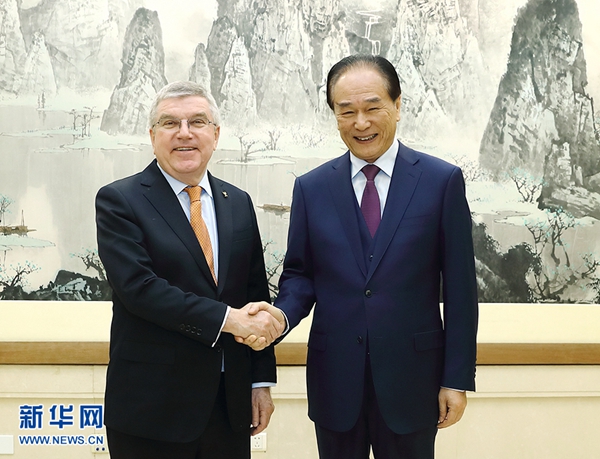 1月30日,新华社社长蔡名照在北京会见国际奥委会主席巴赫。新华社记者 鞠鹏 摄