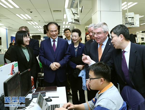 当天上午,巴赫率团访问新华社,同新华社社长蔡名照就进一步加强双方合作进行交流。这是国际奥委会主席首次访问新华社。访问期间,蔡名照陪同巴赫一行观看了新华社推出的开放式新闻直播平台“媒体大脑”、AI合成主播等新媒体创新产品演示,参观了新华社新闻信息发稿中心,并接受了新华社记者的专访。