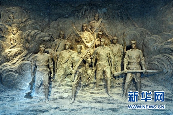 图为山东乳山马石山十勇士纪念馆里的十勇士雕像。新华社发