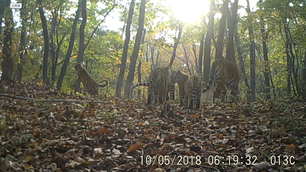 2018年,监测发现多个野生东北虎繁殖家庭现身东北虎豹国家公园。5月26日,在吉林珲春监测拍摄到一只雌虎携带2只幼仔外出的画面;10月5日,同样在珲春监测到另一只雌虎携带4只幼仔在林中漫步,这是中国第三次监测到一虎带4仔的场景。东北虎繁殖家庭连续被发现,显示了中国东北虎种群繁殖力旺盛,东北虎豹国家公园内的东北虎种群迎来了一次比较集中的繁殖高峰期。