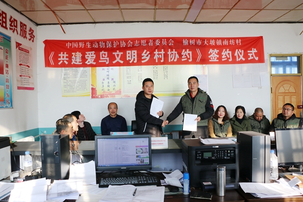 中动协志愿者委员会与吉林省榆树市南坊村签定《共建爱鸟文明乡村协约》