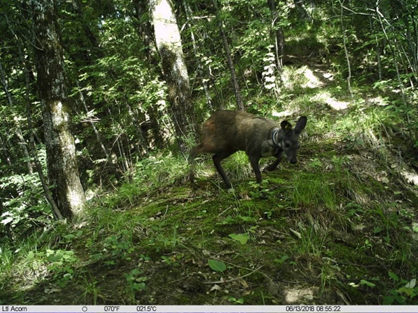 2018年4月26日以来,红外相机多次在陕西省宁陕县密林中拍摄到成年佩戴GPS项圈的人工养殖的国家一级重点保护野生动物林麝个体及携带幼仔活动的场景,表明陕西省进行的世界首次养殖林麝野化放归试验获得成功。