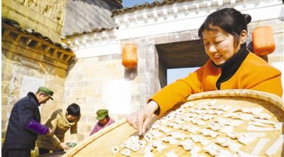 图为江西省抚州市金溪县竹桥古村,当地村民制作传统食品,迎接新春。新华社记者 彭昭之摄
