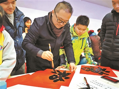 刘建丰说,今年平谷庙会期间,书法家们已排好值班表,每天都将驻守在庙会的书法大棚下,为大家继续免费现场写“福”、写春联。(记者 林艳)