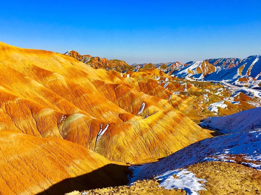 2019-01-31,甘肃张掖。甘肃张掖丹霞景区又降瑞雪,夏日色彩斑斓的丹霞,雪后变得更加如诗如画,如梦如幻。作者 :朝阳