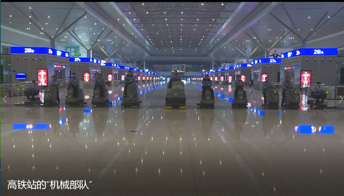 春节期间,每天凌晨时分,在郑州东站都活跃着一支特殊队伍,保卫着车站的整洁。它有一个很酷的名字——高铁站的“机械部队”。