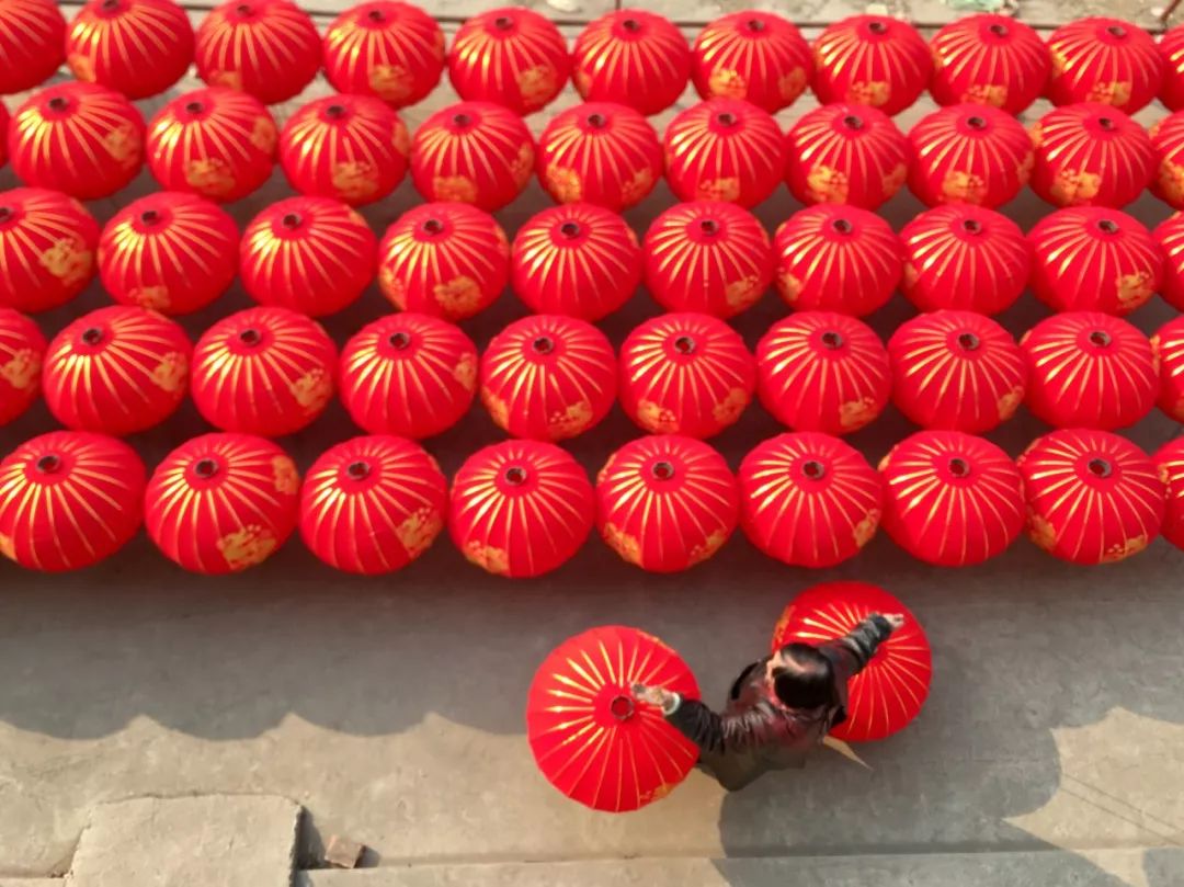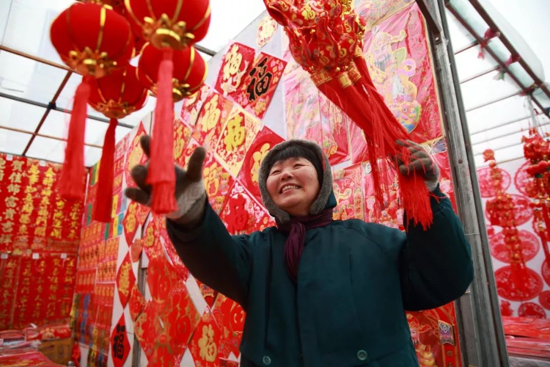 2019-01-27,辽宁省东港市。春节前夕,一位阿姨在对联市场挑选灯笼。作者:青春