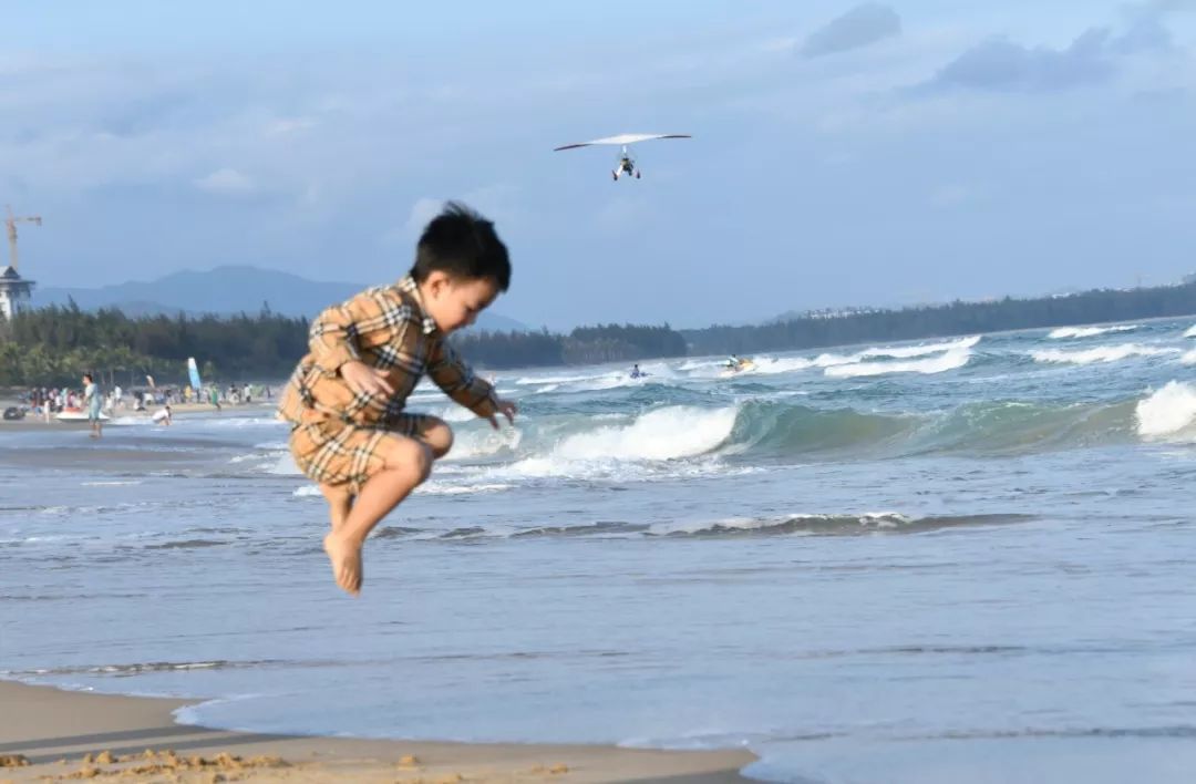 2019-02-03,海南省三亚市。一个小孩想和飞机比谁高。作者:冉建秀