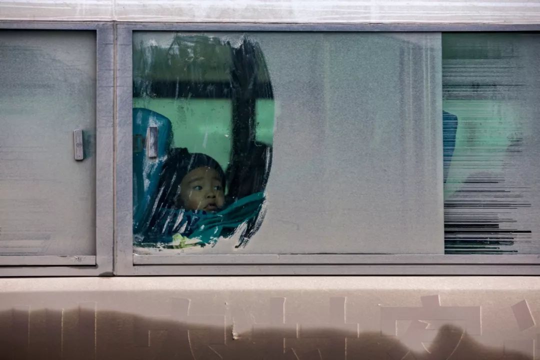2019-01-29,湖北省利川市。利川中心客运站,一个孩子在汽车里,向回家的方向张望。作者:利川六哥