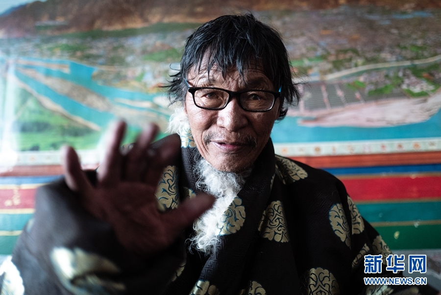现年77岁的白玛老人讲述当年的情况,43年前,为寻找更好的草场、更好的生活,白玛老人从那曲地区申扎县,“无畏”地走进了双湖。自1974年,从申扎县嘎措乡到双湖嘎措乡,老人担任乡党委书记一直到2002年(1月31日摄)。新华社记者 普布扎西 摄