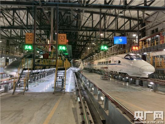 高铁白天在线路上飞驰,夜晚才会进入动车所。因此,每天下午5点半到次日凌晨的这段时间成了郭志华和同事们最忙碌的时刻。