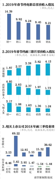 春节档的票房仍是各路资本逐鹿的焦点,但哪家上市公司又能在今年的春节档票房中斩获最多?影片口碑的下滑和票房收入又会如何影响上市公司的业绩?还有很多悬念值得大家拭目以待……(记者 林子)