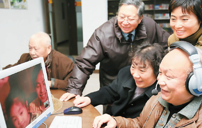 家住杭州的张淼林夫妇通过网络视频和美国的儿子一家通话,6岁的孙女在网上给爷爷奶奶拜年。资料图片