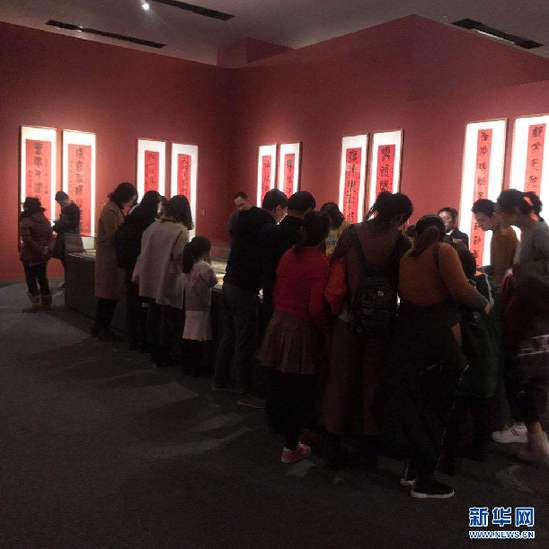 图为2019新年迎春书画展现场。新华网刘杨 摄