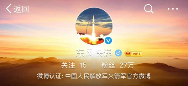 对于火箭军官方微博上线
