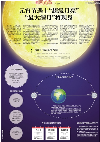 “超级月亮”每年都会发生,有时还不止一次。今年,“超级月亮”将连续三次登上天幕,时间分别是1月21日、2月19日和3月21日。