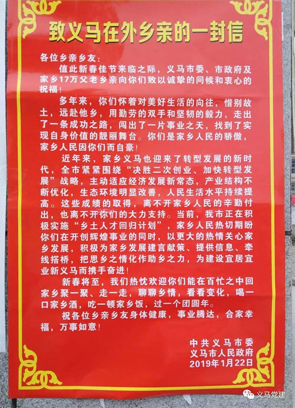 一元今复始,春风又一年。为了让更多在外拼搏奋斗的游子看到家乡的变化,感受到家乡的呼唤,增进对家乡的感情,2019年春节期间,河南省义马市大力开展乡土人才联络和回归工作,通过寄一封家书、打造一个沟通平台、建立一个“智库”、召开一次恳谈会等形式,广泛发动外出本土人才,深入挖掘人才资源,着力吸引外出人才建言献策、牵线搭桥,支持家乡建设、助力家乡发展,在全市上下形成共建省际区域中心城市、实现乡村振兴的生动局面和强大合力。