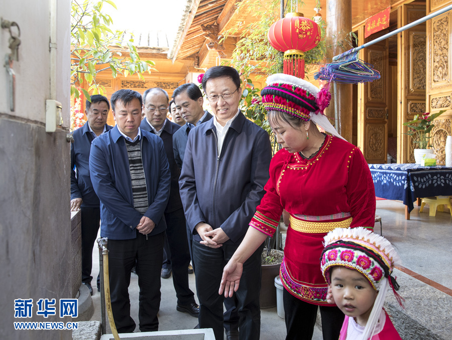 这是2月25日,韩正在大理白族自治州大理市喜洲镇美坝村村民家中询问生活污水收集情况。新华社记者王晔摄