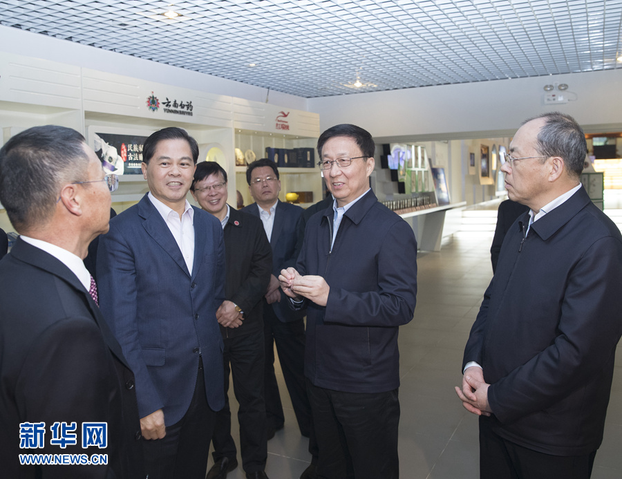 韩正到云南白药集团,考察生产车间,了解生产情况,参观云南白药博物馆。韩正指出,推动国有企业改革发展,要强化品牌建设,打造具有国际影响力的民族品牌;要加大研发投入,掌握关键核心技术;要完善治理体系和治理结构,推进混合所有制改革。