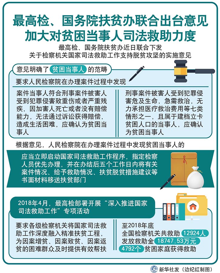 图表:最高检、国务院扶贫办联合出台意见 加大对贫困当事人司法救助力度 新华社发 边纪红 制图