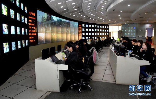 海淀区城市服务管理指挥中心指挥大厅(2月19日摄)。新华社发(任超 摄)