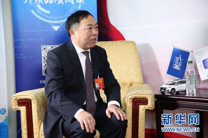全国人大代表、湖北省三堰淌村党总支书记吉明东做客新华网两会访谈。 新华网 章佳礼 摄
