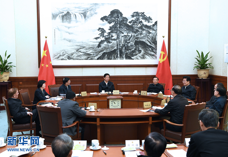 3月18日,中共全国人大常委会党组在北京举行会议,认真学习领会习近平总书记在十三届全国人大二次会议期间的重要讲话和大会精神,重点就做好全国人大及其常委会立法、监督等工作开展讨论。中共中央政治局常委,全国人大常委会委员长、党组书记栗战书主持会议并讲话。新华社记者 饶爱民 摄