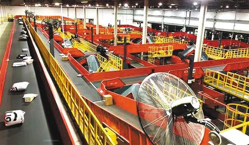 上图 顺丰速运采用双层自动分拣系统,大大提高电子单识别效率。